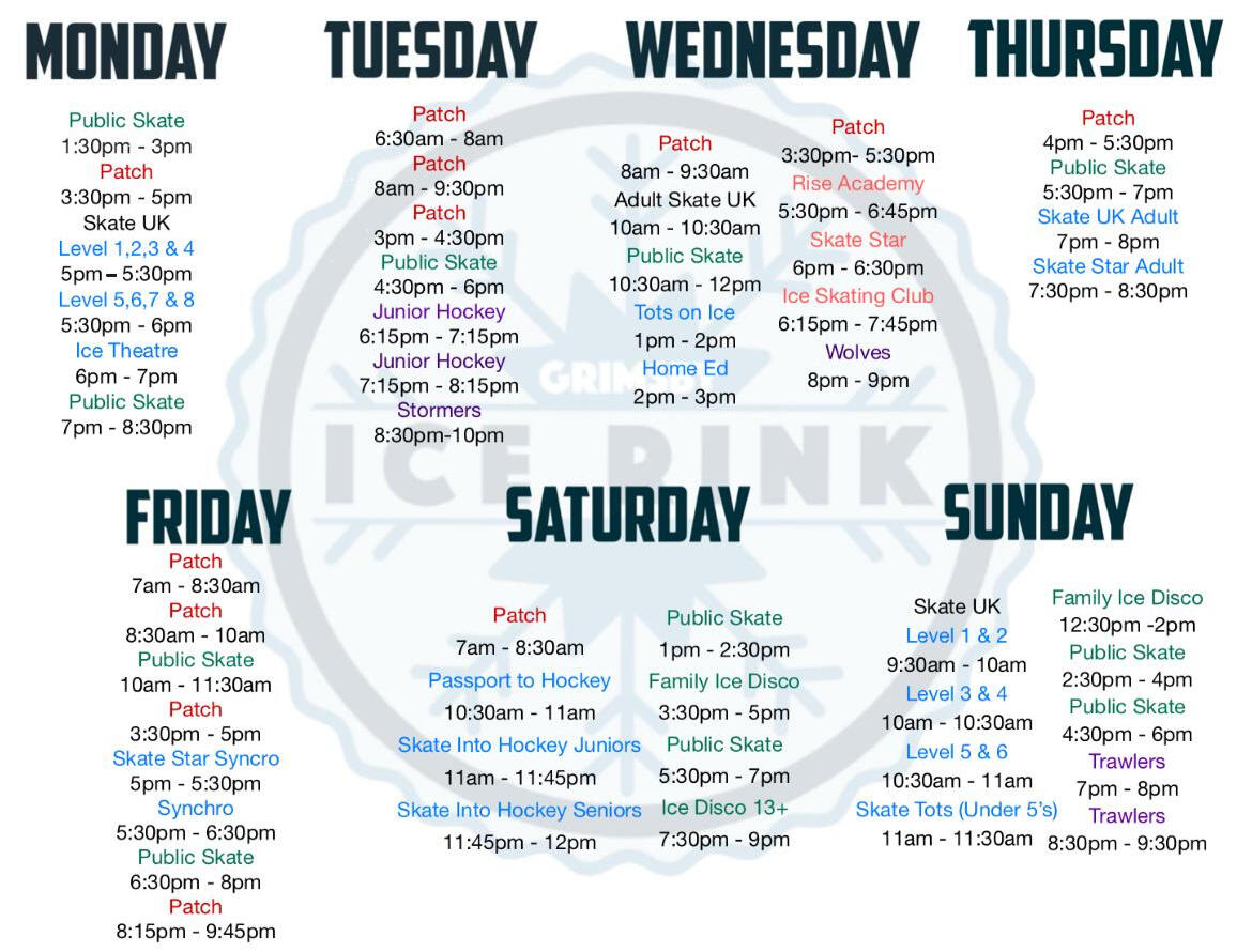 For any further information ask at Skate Hire, visit our booking site, or call 01472 476029 during timetabled hours, or send an email to info@grimsbyicerink.com